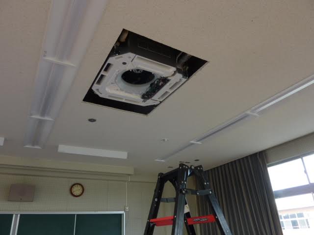 天井カセット4方向エアコン 施工 2023.04.17 お知らせ 吹き出し口が4方向にあり、天井に埋め込むタイプのエアコンを施工中です。 4方向から風が吹き出すので、風が空間に行き渡り快適に過ごせます。 また、天井と一体化し、スッキリとした見た目で、雰囲気を損なわず設置できます。 Tweet Share Hatena Pocket RSS feedly Pin it 空調工事 10馬力(業務用) 前の記事 浴室暖房換気扇 工事 次の記事